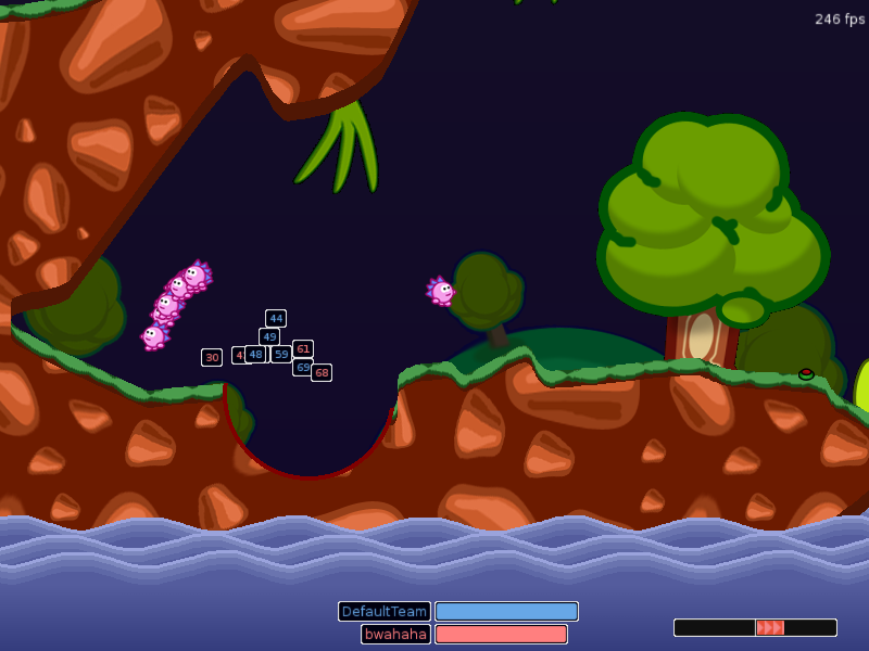 <p>A large variety of tools and weapons are available for players during the game: Grenade, Cluster Bomb, Bazooka, UFO, Shotgun, Desert Eagle, Fire Punch, Baseball Bat, Dynamite, Mine, Rope, Pneumatic pick, Parachute, Hellish Grenade, Watermelon Bomb, Seduction. |