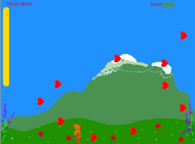 Hugooski is a bear you move left and right, with the ability to jump and collect hearts to advance to the next level while trying to avoid falling objects. |