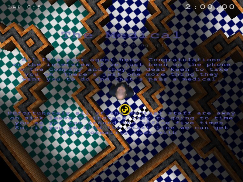 | Infernal Contractor II | Andy Southgate | Mushware Limited | www | www | Screenshots | 0.1.1 | Fast moving 3D office simulation. | Take on the role of the Infernal Contractor and raise mayhem in this fast-moving 3D office simulation. This episode sees you racing round the office against the clock in an attempt to prove your fitness to the demanding recruiters. Slippery floors and dodgy ergonomics are all that stand between you and gainful employment. Hear encouraging phone calls from your agent, the harsh judgements of the recruiters, and the final countdown as you race for the finish line in this interactive simulation. | action | free | ![]() |