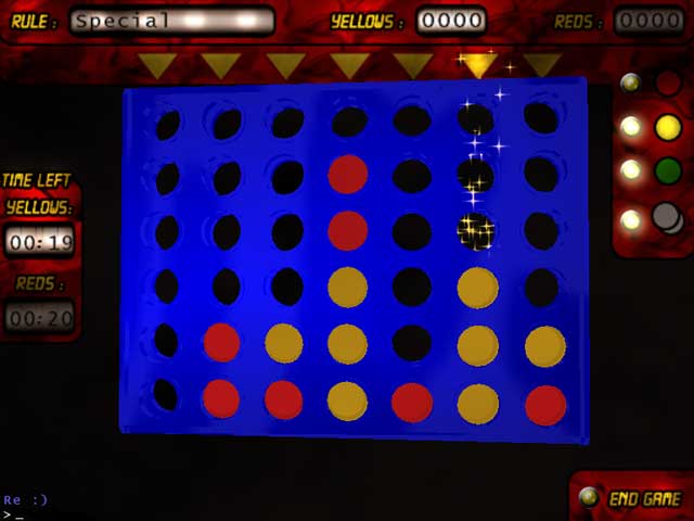 <p>Connect-Four style game that can be played through the Internet or against an artificial intelligence, with a three dimensional representation of the game. It's also possible to see the scores, time left, change the game rules, and even chat with others in the game or in chat room. You can play online and chat on the Beroux.com server for free, and may be you'll be in the highscore. |