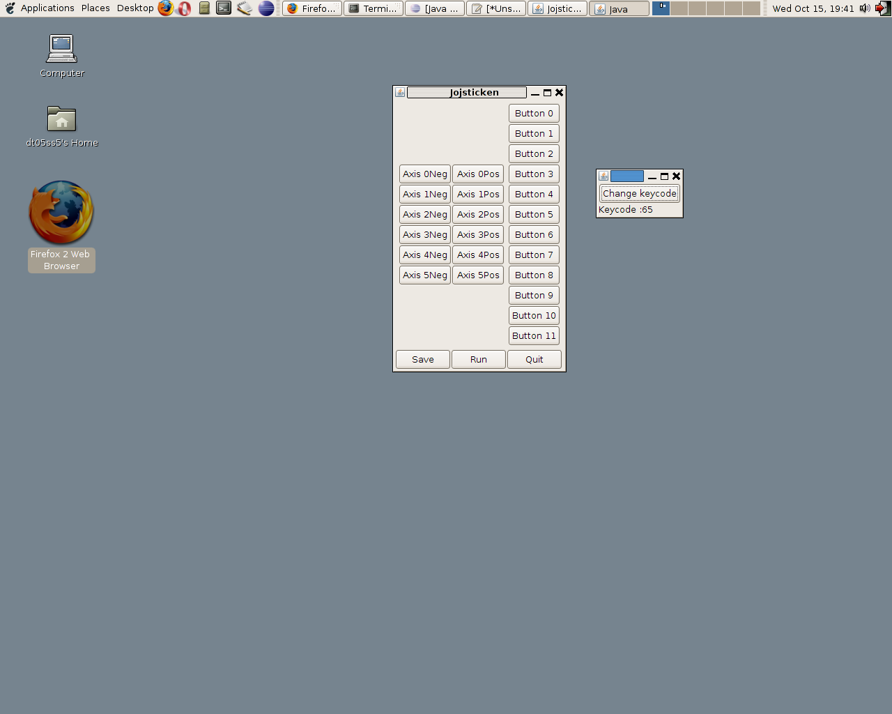 <p>Jojsticken is a program that maps buttons on your gamepad to keys on your keyboard. It has basically the same functionality like <a href="http://rejoystick.sourceforge.net">rejoystick </a> and <a href="http://qjoypad.sourceforge.net">qjoypad</a>. However, it is written in java and works on Windows as well.</p> |