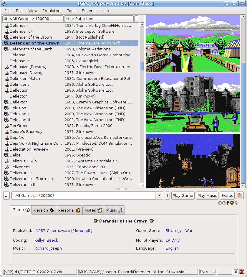 <p>jGameBase is a fully-featured retro-gaming emulator frontend and game database utility (e.g. GB64 Collection of C64 games). It supports virtually any emulator for any system and has versatile database searching and filtering.