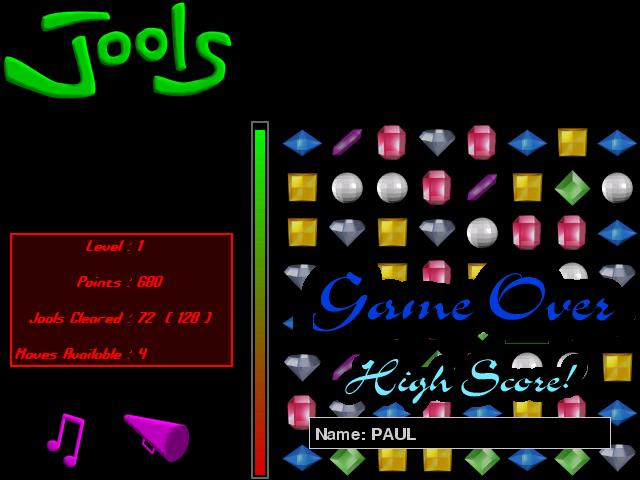 Jools is a clone of Bejeweled, a popular graphical puzzle game |