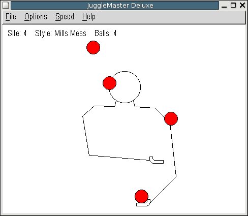 JuggleMaster is basically a cross-platform Juggling animator [understands <a href="http://www.siteswap.org/">siteswap</a>, for anyone who wants to know what it is]. Anyone who doesn't know what siteswap is can still download it and look at the patterns that come with it, and examine the cool stuff they could do if they did understand it. |
