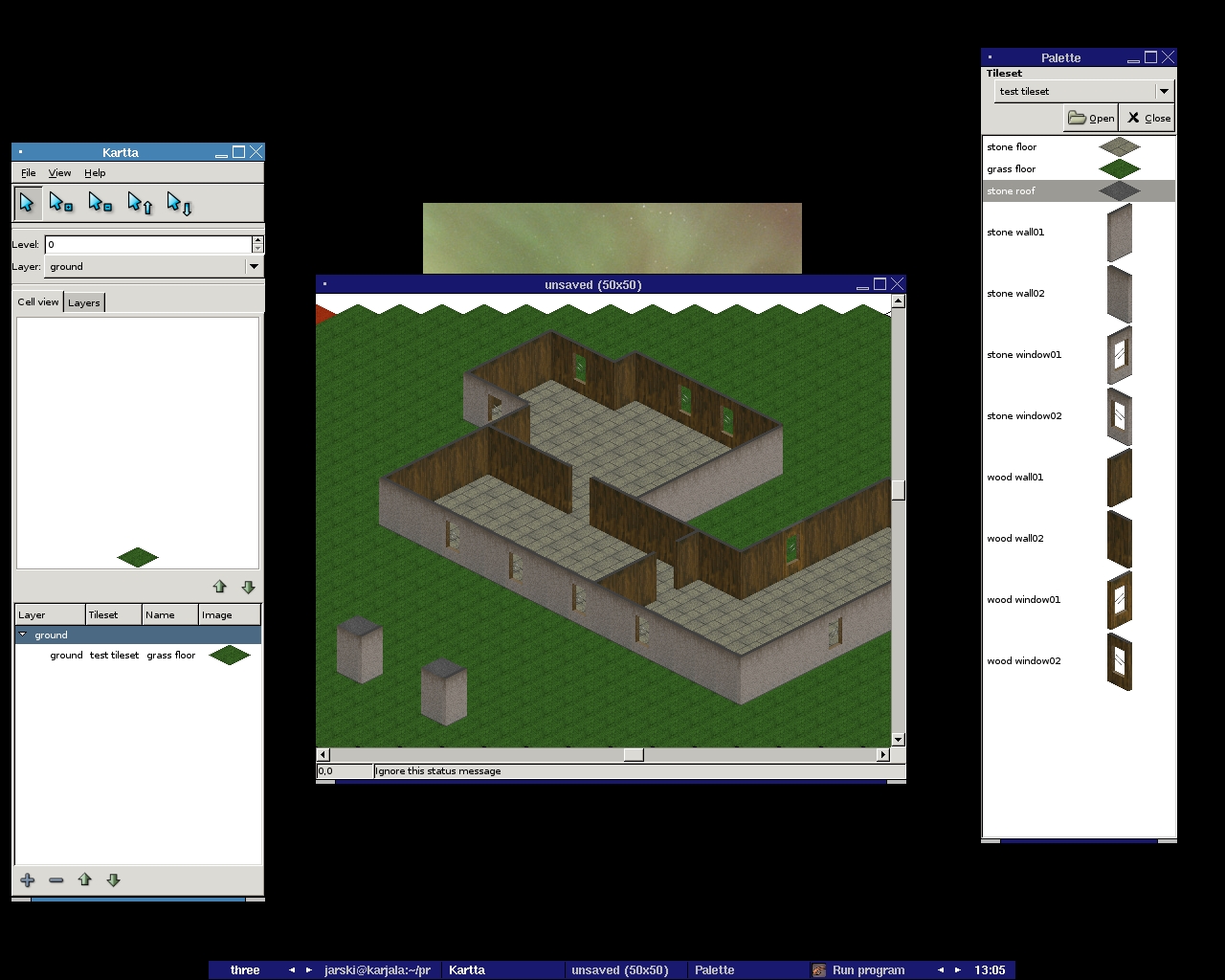 Kartta is an isometric map editor. It supports both diamond and staggered maps with multiple levels and multiple tile layers. XML is used for data files. Requires gtkmm and boost libraries to build.