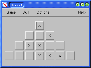 A school's little game written in C++/QT. There are a set of boxes and you should wipe some of them in turn with a friend or the computer. The person who wipes the last square loses. |