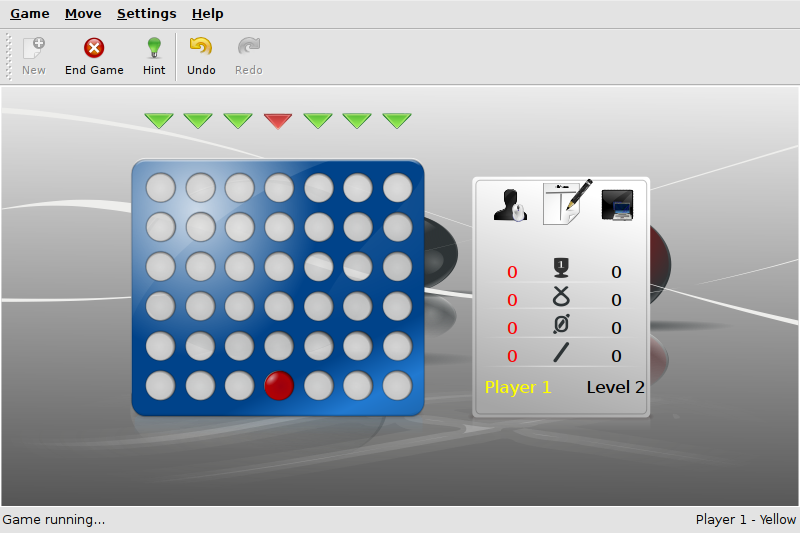 <p>KFourInLine is a board game for two players based on the Connect-Four game. The players try to build up a row of four pieces using different strategies.