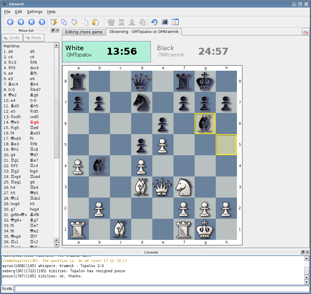 <p>KBoard is a generic game interface for two player turn based board games, and currently supports a bunch of chess variants, connect four, reversi and chain reaction (and more will be added). Kboard also supports network chess play on ics servers, as well as game observation and examination. It features a quite powerful generic animation engine, and a highly customizable theme specification (based on lua), that can just load everything and create shadows. Easy pgn game editing is supported. |