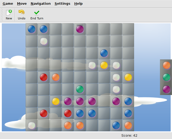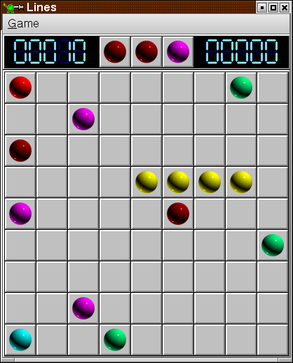 KLines2 is yet another clone of the well-known Lines game. It should run under any POSIX-compliant system which has Qt installed. KLines2 is now tested under Red Hat Linux 7.3 under KDE but it should run on other systems, too.<br>