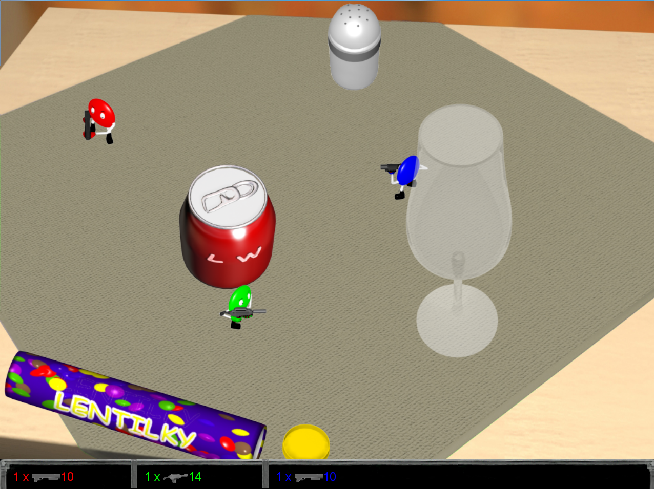 <p>Lentilwars is a one-screen shoot 'em up arcade where up to 5 M&Ms-like "Lentils" fight each other for survival. Play against your friends over the net or on local LAN to kill those boring work hours ;) |