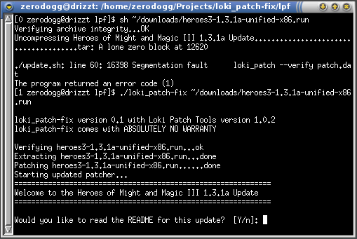 loki_patch-fix is a program that fixes old patches for loki games that now segfault upon startup. It does this by replacing the old loki_patch executeable with a new one automatically. Running this file on any of the non-working loki patches should make them work without any problem. |