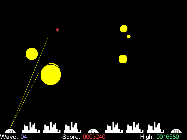 Protect your city from nuclear disaster by destroying incoming warheads with your anti-missile SAMs. This is a clone of the Atari game Missile Command for Linux |