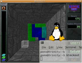 Blocks is a 3D Tetris LookALike using the <a href="http://happypenguin.org/show?Crystal%20Space">Crystal Space 3D Engine</a>.