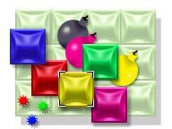 In this game it is your job to clear the playing field as much as possible. You do this by dragging one another pieces with the same color or value. But this works only if the target piece is at the same row or column as the dragged piece. You drag a piece by clicking on it with the left mousebutton, hold the mousebutton down and move the cursor to an other piece. Look at the cursor to see whether a move is possible or not. If the cursor is over your target piece then release the mousebutton to drop the piece. If a move is possible then the dragged piece replaces the piece it droped of. The game ends if no more possible moves left. |