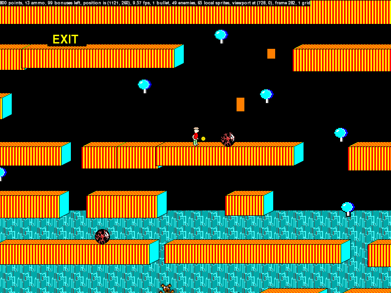 Brian is an unfinished jump-and-run platform game. It is written in the Python programming language, using the Pygame library (on top of SDL). Although it will be an independant project, it will be inspired by Commander Keen. It will be written using a Linux workstation, but it should be crossplatform for all major platforms (Linux, Windows, Mac). It is called Brian after "Monty Python's Life of Brian", and the game may contain some references. Currently, Brian includes the following features: