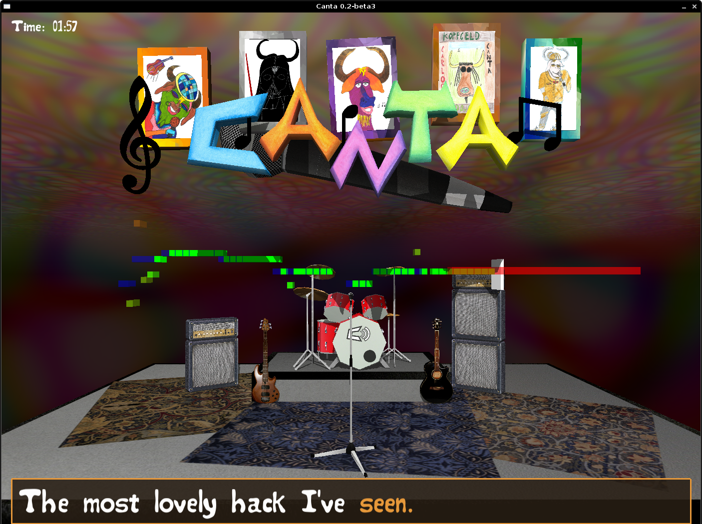 <p>Canta is a platform-independent karaoke (singstar-like) Game. You have to sing to songs and the game shows you if you are hit the notes and at the end you see your skill-level.<br />