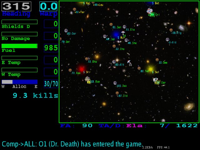 Real-time, multi-player space warfare game. Curses and OpenGL Clients provided. |
