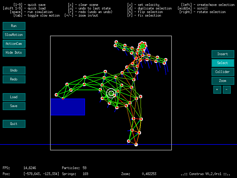 Construo is a simple, but fun construction toy. You can construct simple 2D wireframe models and let them react on gravity forces, see them break, smash or explode.