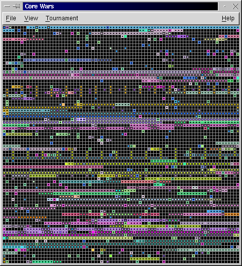 Core Wars is a game which simulates a virtual machine with a number of programs. Each program tries to crash the others. The program that lasts the longest wins. A number of sample programs are provided and new programs can be written by the player. |