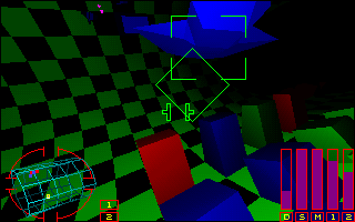 Cylindrix is a 3-on-3 combat game with 360 degrees of freedom that is similar to Spectre VR but with a wider variety of ships, as well as the addition of drivers. Attack and be attacked from all angles as you battle in huge orbiting arenas that are each unique in physics, atmospheric conditions, and configuration. You must build your team from 37 warriors from 10 alien races and select from 8 vehicles, each with unique maneuverability, speed, and firepower. The graphics are good, although structure and ship graphics are a little too monotonous. Gameplay is fast and furious... so furious, in fact, that it is difficult to differentiate between friend and foe in the thick of battle. For those who are confident of their reflexes or have beaten Spectre and Battlezone, though, this game is worth a try. |