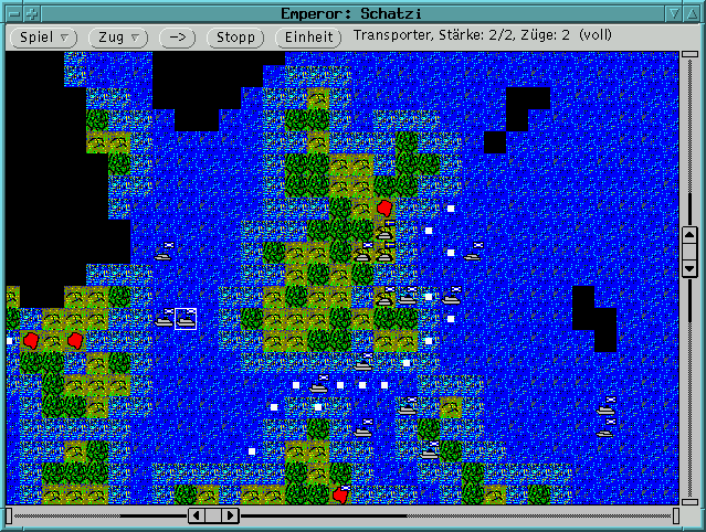 Empire is a multi-player console based game which runs on UNIX. Empire is a continuing turn-based game with activity limited by accumulated time units. Thus, if you return to the game after 24 hours, islands and units have accumulated time units which you can then use. Games can last months.