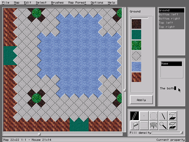You can specify the way the maps are loaded and saved, you can also define some commands. There are two applications created with eme: seme (Simple eme) and ieme (Image eme). seme allows you to create maps without coding anything yourself and exports map loading code to include in your game. ieme is a simple bitmap editor.