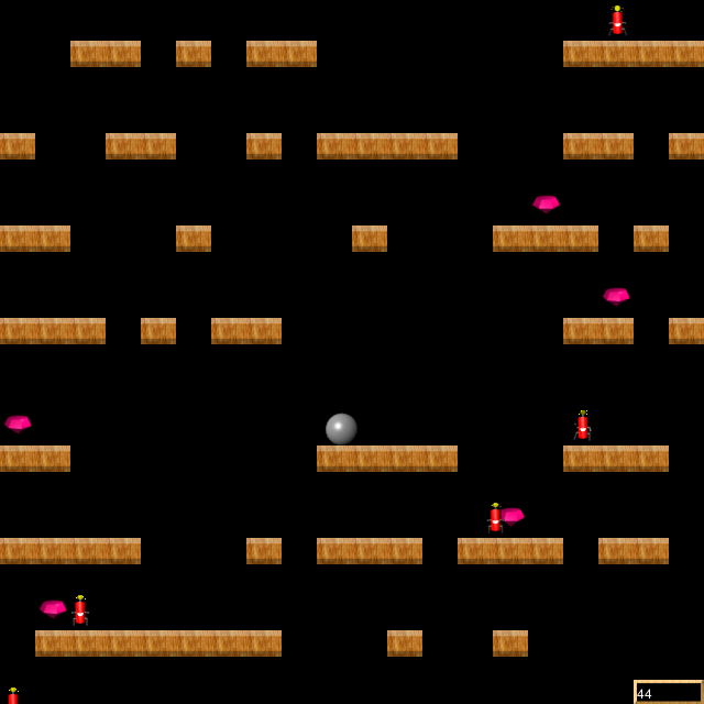 <p>Falling is a fast-paced survival game where the user controls a small steel ball and tries to roll it through holes in floors which are constantly moving up. Avoid being crushed between the top of the window and a floor, avoid mechanical sticks of TNT that explode on contact, and avoid magnetic balloons which pull you to the top of the screen. Collect jewels for extra points. Try to survive as long as possible! |