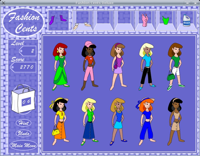 <p>Like the original game, you are given a wide assortment of hats, tops, bottoms, and shoes in a variety of styles and colors, which you must combine into outfits that are color-coordinated. Add accessories like glasses and purses to score bonus points. Create enough outfits to advance to the next level!