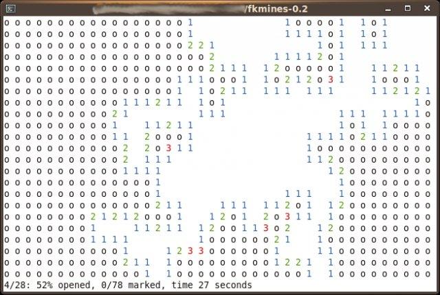 <p>The objective of the game is to clear a virtual field of mines using information provided by the surroundings of the mines (aka Minesweeper). It is played in a linux terminal, so it has no GUI |