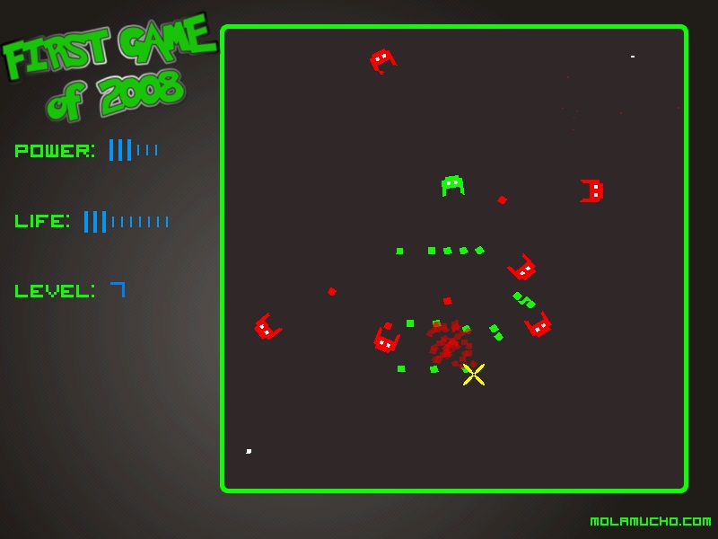 <p>The first game of 2008 (I hope it really is, if not, it's title would be a lie!) is a fast and thrilling action game. Shoot the red Martians before they shoot you!