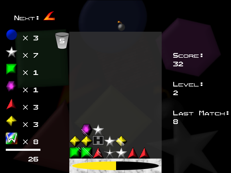 Gemhun is all about grouping gems/stones of a chosen amount together which will then dissappear. There will be plenty of different game-modes, theme- and network-support. It is inspired by FrozenBubble/Tetris and some others. |