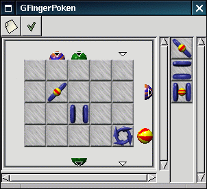 <p>In GFingerPoken, you must determine the location of hidden mirrors, deflectors, and weirder gadgets by rolling marbles into a grid and examining where they exit. |