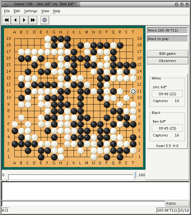 gGo is a Java client for IGS Panda Net that provides you with a graphic interface for playing Go, observing, and communicating with other players. gGo is also a full featured SGF editor that allows you to review and edit games. gGo can be used as an interface to play Go against a computer program like GNU Go.