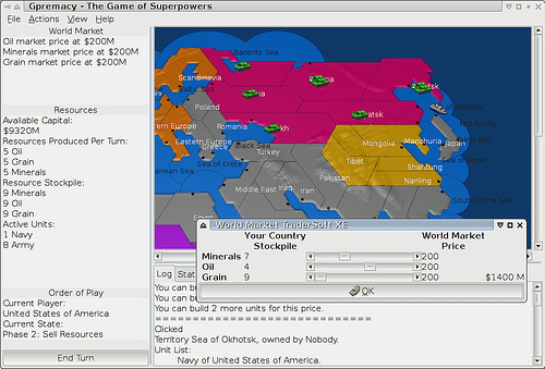 Gpremacy is a Mono/GTK# adaptation of the 80s board game "Supremacy" by Supremacy Games, Inc. The game is a "Risk"-like game set in the near future between the superpowers with macroeconomics and nuclear weapons. It is cross-platform compatible with all major operating systems. |
