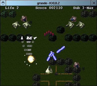 Grande is a "ZANAC"-esque 2D scrolling shooting game.