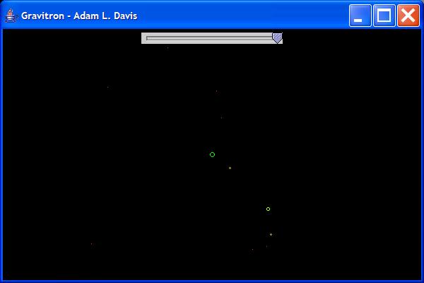 <p>At the start of the program, there is nothing but space. The user can create planets with specific trajectories, sizes, and velocities by clicking and dragging with the mouse. The left mouse key and right mouse key produce different sized planets. By selecting a planet, it becomes the center of view, so that it always stays in the exact center of the screen.
